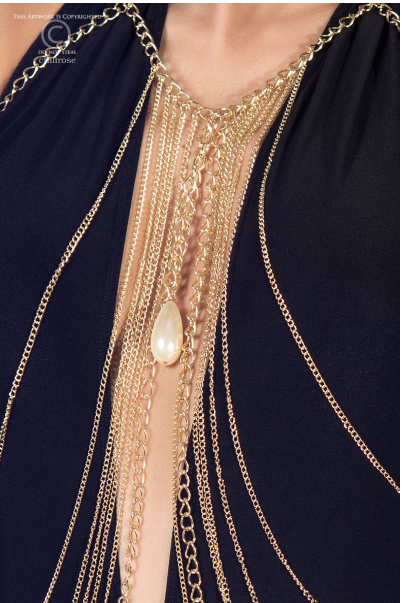 Composed of thin metal chains, this jewellery is to be worn on the body.