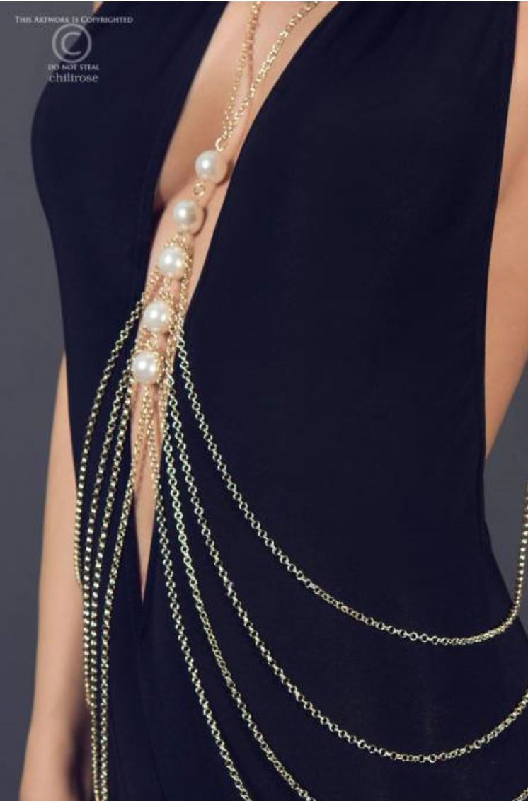 Composed of thin metal chains, this jewellery is to be worn on the body.