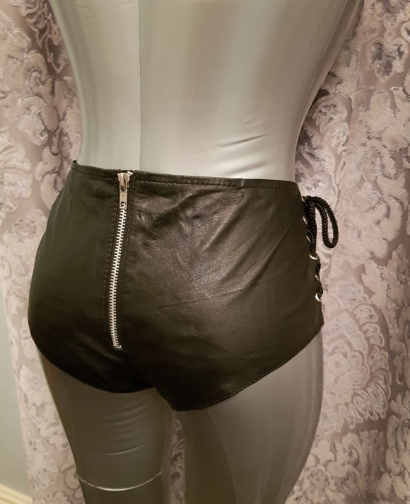 Allure Lingerie leather lace-up shorts (black, S, M, L)