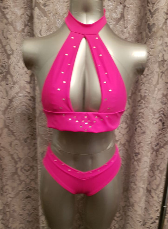 Floodline booty shorts and top bikini set (fuchsia, S)