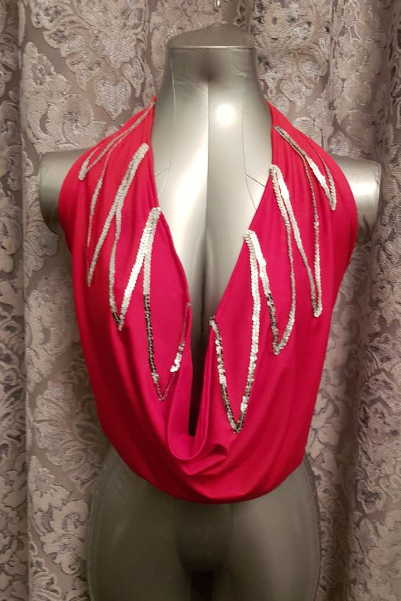 Mapale by Espiral strappy wet look wraparound top (red, M/L)