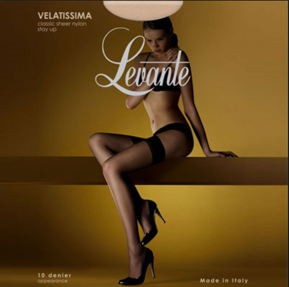 Levante "Velatissima" stay-up stockings (10 denier, nero, 2 sizes)