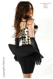 Burlesque style corset with fringed hem and bust, removable shoulder straps, fully laced back and side hook and eye release. Matching string included.