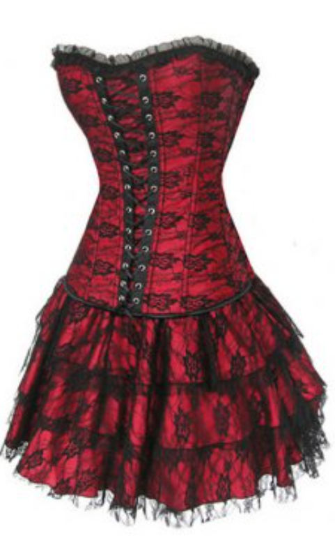 Lace-up back and front.3-tiered matching skirt (attached to corset top).