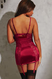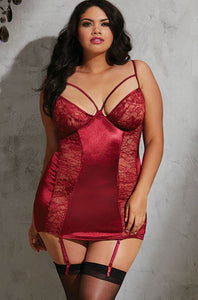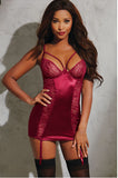 Dreamgirl satin and lace gartered chemise (garnet red, M, L, 1X, 2X, 3X)