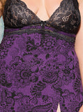 Lace printed chemise with stretch lace cups, flirtatious side split, and adjustable shoulder straps. Includes G-string. Material: 95% Rayon, 5% Spandex Colour: Purple and Black SKU 12.25474 Size: 3X
