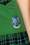 School girl with halter zip back dress, collar with attached neck tie, and bow headband (not shown in pictures).