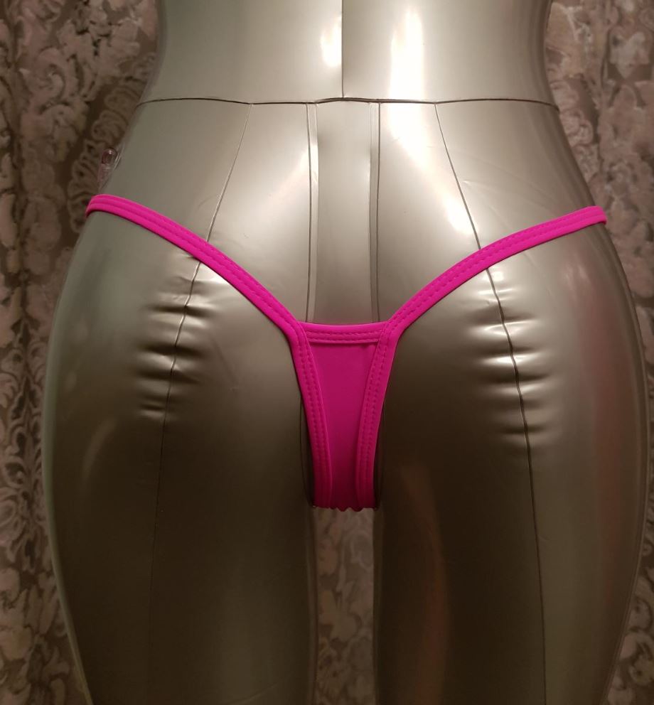Break away showgirl G-string with square rhinestone clasps.