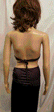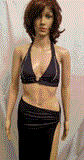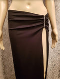Long asymmetrical skirt with rhinestone detail, and rhinestone top.