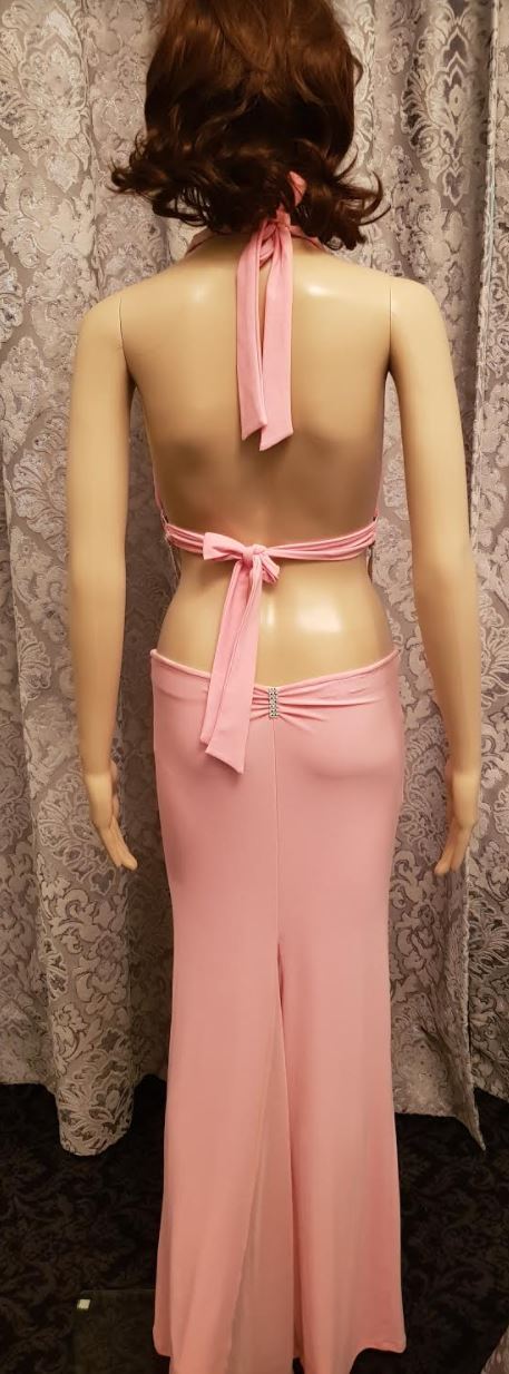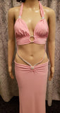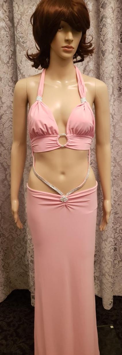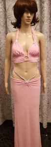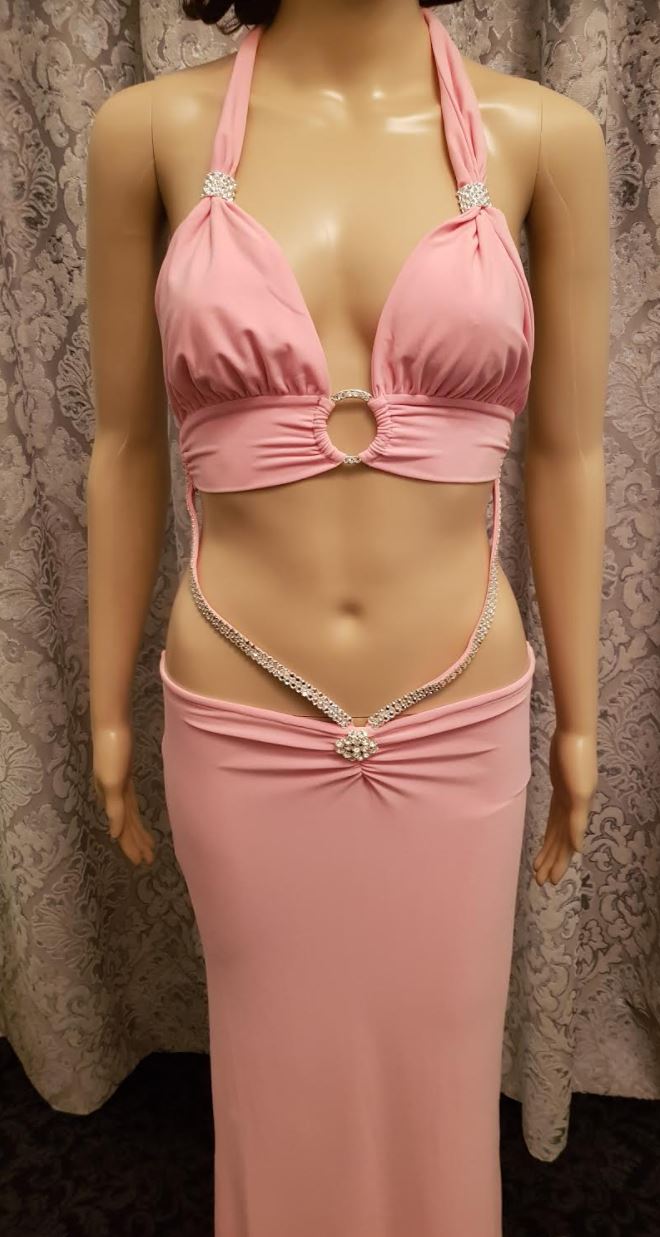 Long skirt and rhinestone top set, attached at the front with twin rhinestone chains.