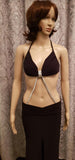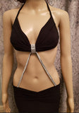 Long skirt and top set, attached with twin front rhinestone chains.