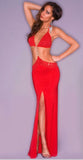 Long skirt and sequin top set, attached with front metal chain with rhinestones.