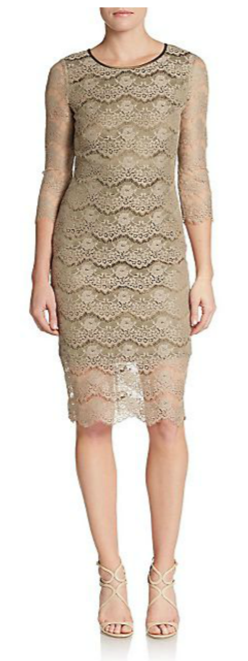 Erin Fetherston intricate lace dress, finished with scalloped edges on hem and sleeves.
