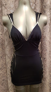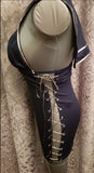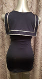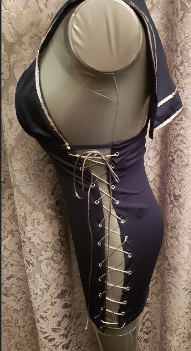 Sailor costume with flirty fully laced on both sides and sewn-in sequin trimmed traditional back square.