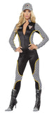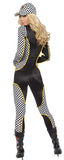 Checker jumpsuit with zipper front.