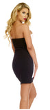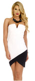 Two-tone minidress with V-neckline and asymmetrical hem line. Material: 96% Polyester, 4% Spandex Colour: White front and Black back SKU 11.885203 Size: M, L, XL (US size)